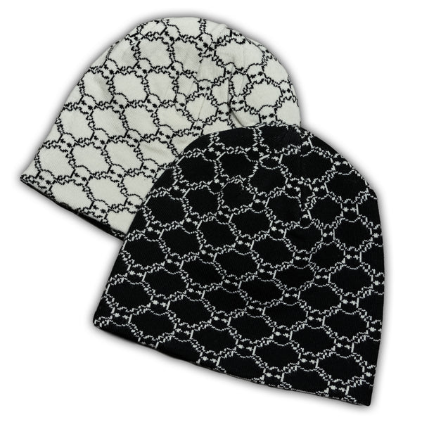 REVERSIBLE BLACK + WHITE MONOGRAM.